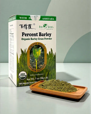 Percent Barley Green is a premium superfood blend of organic Barley Grass and Ashitaba from Hachi Jo Island, Japan.